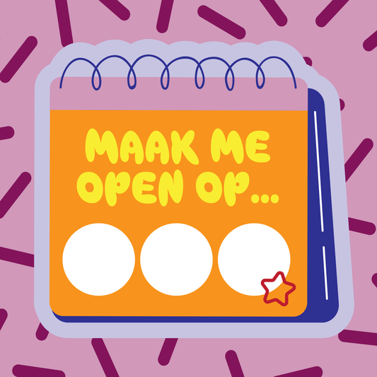 Wil je dat het cadeau of de kaart op een speciale datum geopend wordt? Geen probleem! Wij plakken onze ‘Maak me open op…’-sticker op het pakket.