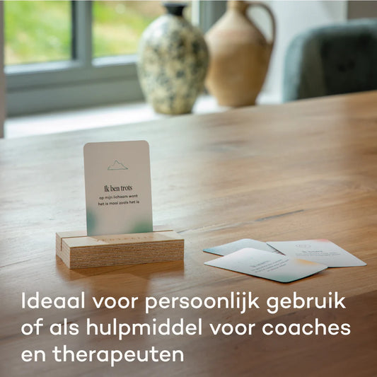 Deze kaarten, wetenschappelijk onderbouwd en geïnspireerd op de principes van de positieve psychologie, helpen je een positievere mindsette ontwikkelen.