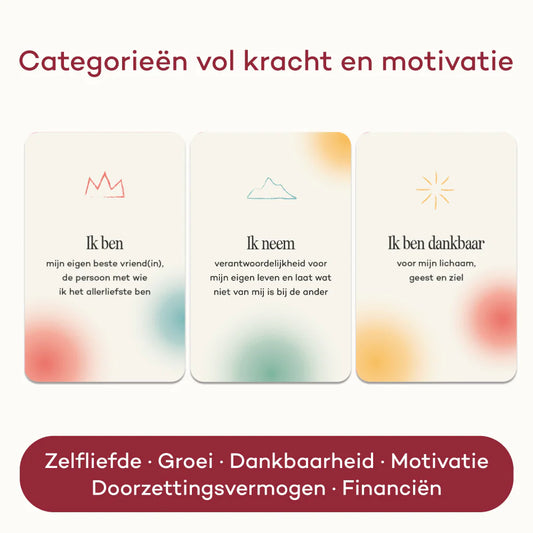 Kies elke ochtend of avond een kaart en ervaar direct hoe je krachtiger, doelgerichter en stressbestendiger wordt.
