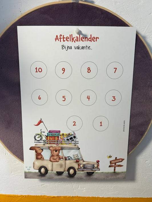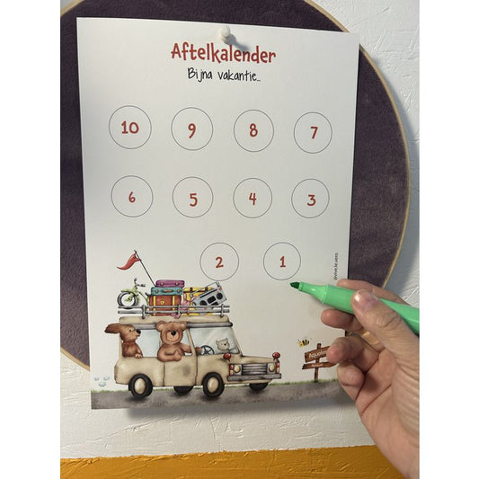 Aftelkalender Vakantie – A4 aftelposter kinderen met zomerse illustratie