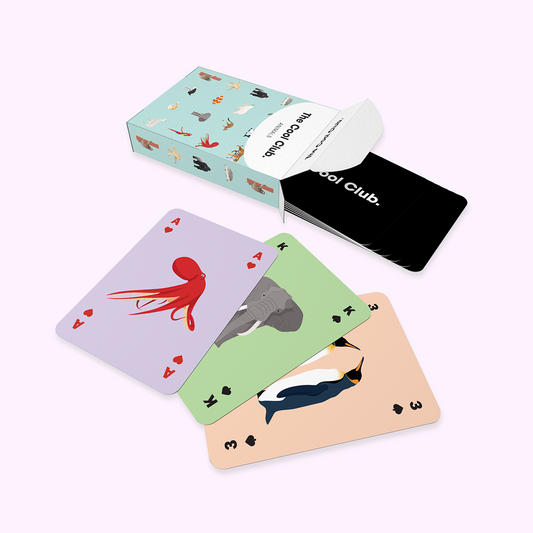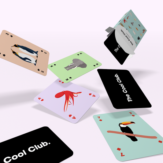 The Cool Club. Animals is een kaartspel met op elke kaart een illustratie van één van de 54 coolste dieren van de wereld - van flamingo's, inktivissen tot leeuwen.