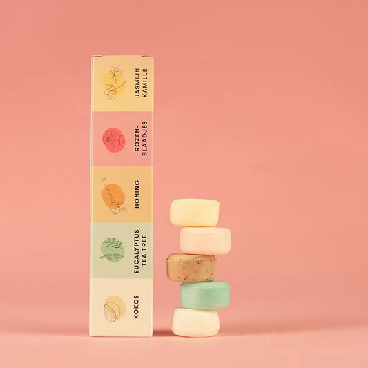 Ontdek plasticvrij douchen • 5 mini Body Bars • 50 tot 75 wasbeurten • 60 gram