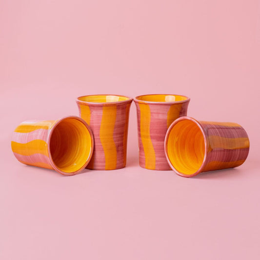 Ceramic breakfast glass 250 ml | Pink and yellow stripes PEPA