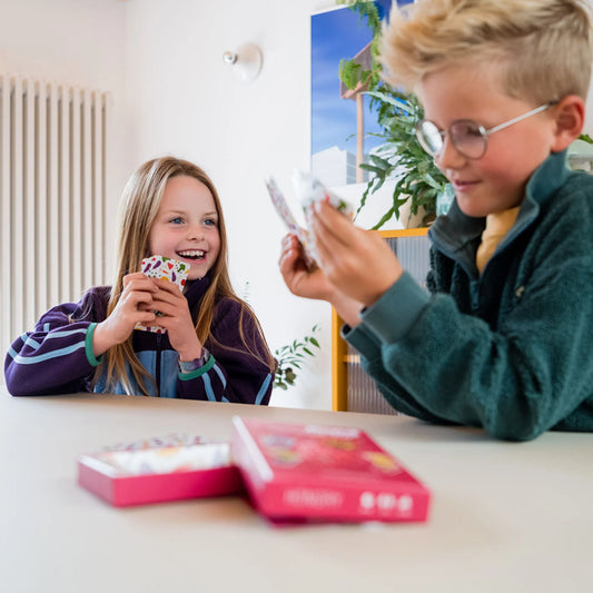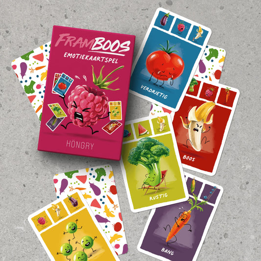 Een veelzijdig spel, zoals je het van HÖNGRY gewoon bent! Het volgt de spelflow van een kwartetspel maar we stopten er speciale actiekaarten bij. Zo wordt het extra leuk en uitdagend, ook voor oudere spelers. Het spel bevat 9 verschillende emoties dus ze kunnen ook dienst doen als emotiekaarten en gespreksstarter...