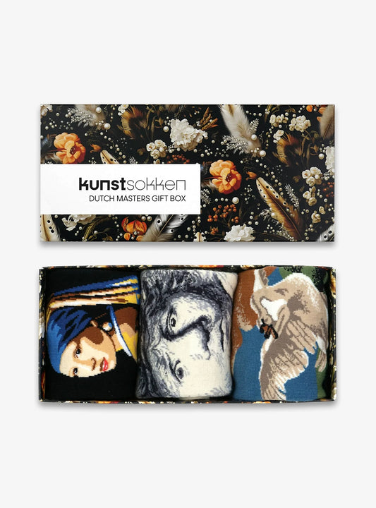 Deze geschenkdoos bevat drie iconische werken van Nederlandse meesters samen – van Vermeer's betoverende Meisje met de Parel tot Rembrandts expressieve zelfportret. Een cadeau om te koesters voor liefhebbers van klassieke Nederlandse kunst. Maat 41-46