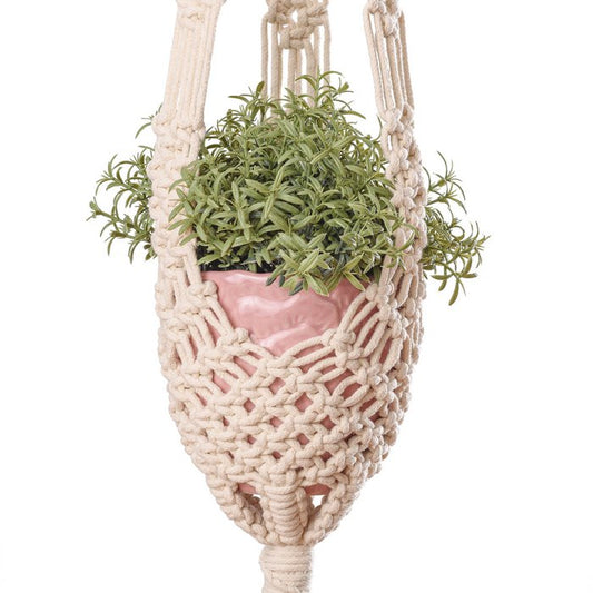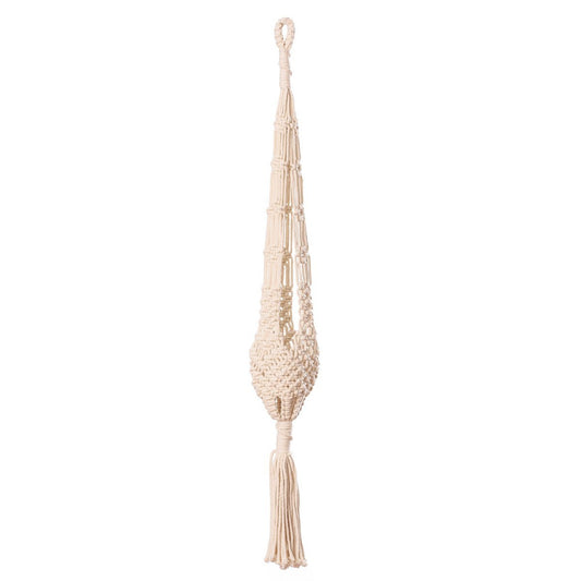 Voeg een vleugje elegantie en schoonheid toe aan je huis met deze op boho geïnspireerde macramé plantenhanger. Met een flexibel geweven ontwerp past deze hangende, katoenen, gevlochten plantenbak in macramé-stijl in potten van verschillende vormen en maten (potten en planten zijn niet inbegrepen).