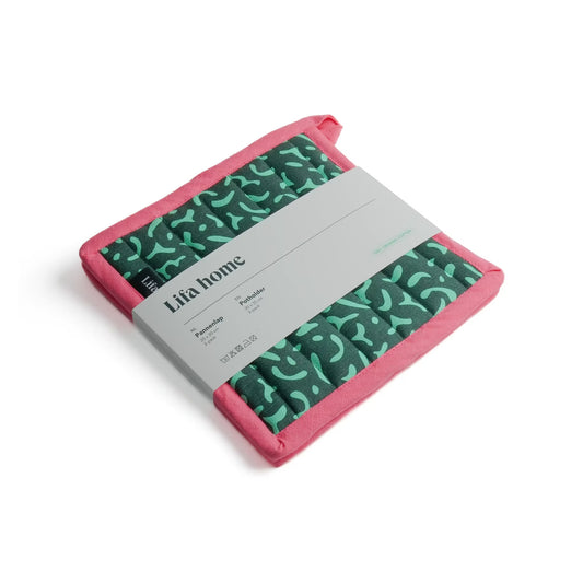 Geef je keuken een extra gezelligheid met deze stijlvolle pannenlappen. Gemaakt van 100% organisch katoen, biedt ze uitstekende hittebescherming en voelt ze heerlijk zacht aan. De moderne ontwerpen en kleuren passen perfect bij de nieuwste interieur- en modetrends. Met dit elegante pannenlappenvoegje heb je zowel functionaliteit als flair toe aan je keuken.