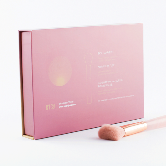 De make-up borstels worden handgemaakt met BASF haren en rozekwarts handvatten. De kwaliteit van elke borstel wordt grondig gecontroleerd tijdens de kwaliteitscontroles. De BASF haren worden eerst gekamd, dan worden ze samengebonden, geknipt en in vorm gebracht om vervolgens geïnstalleerd te worden op de rozekwarts handvatten. “When in doubt, blend it out." Wat maakt de ExcluJess make-up borstels zo magisch: •