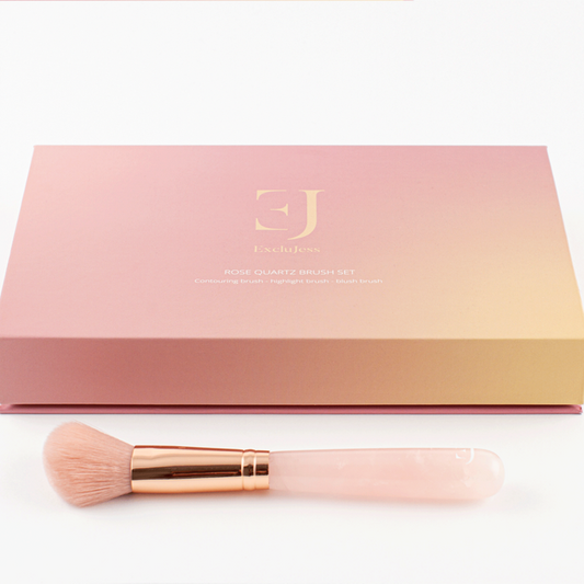 De keuze om de handvaten van onze ExcluJess make-up borstels uit rozekwarts te maken was dus snel gemaakt. Rozekwarts geneest ook klachten die veroorzaakt worden door stress. Als je het kristal in een ruimte in je woning legt, dan heeft het een rustgevend en harmoniserend effect op de sfeer. De set bevat de essentials die iedere vrouw nodig heeft in haar make-up kit. Er is een borstel voor het aanbrengen van blush, een borstel voor contouring en een borstel voor het aanbrengen van highlighter.
