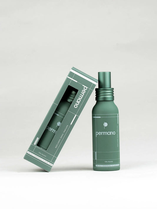 No-rinse hand sanitizer, with 70% alcohol. The aluminum spray dispenser contains 80 ml of product - 500+ sprays – to help you enjoy clean, fragrant and hydrated hands, everywhere and always. Permano is 100% Made in Italy with the best natural ingredients, paraben-free and nickel-tested.