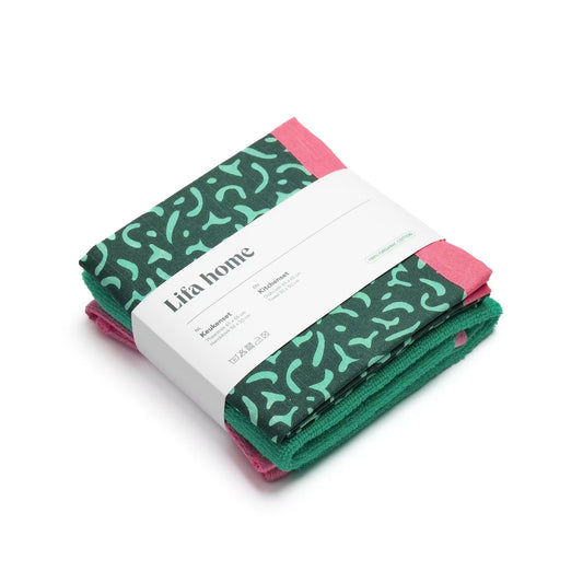 Theedoek en Handdoek Set Vivid Green Green