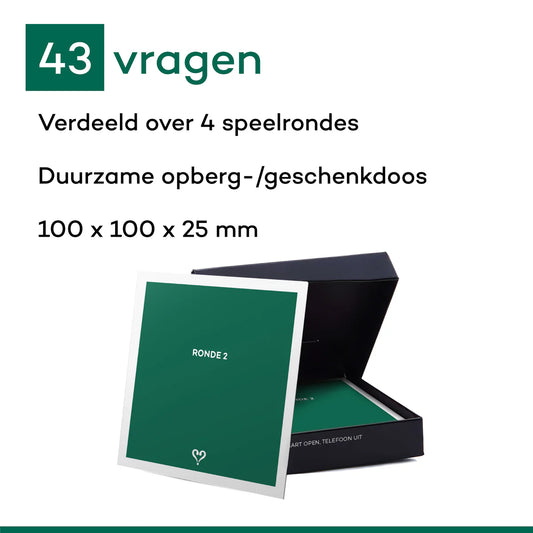 Speel het spel zo vaak je wilt. Wanneer jullie behoefte hebben aan meer échte gesprekken en plezier, trek je een paar kaarten of speel je het hele spel.