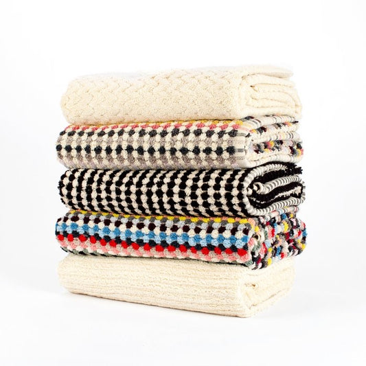 Deze badhanddoeken zijn gemaakt van puur katoen en worden met de hand gemaakt. Ook het patroon, kleuren en wassen van de afgewerkte badhanddoeken gebeurt met de hand.