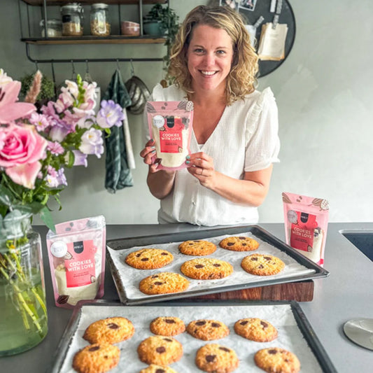 Cookies with Love: Voor koekjes die je hart veroveren! Met deze koekmix heb je altijd een goede reden om iets lekkers te bakken. Een heerlijke traktatie voor elke gelegenheid, met een vleugje liefde in elke hap. Bak ze samen, geniet samen, en deel de liefde!