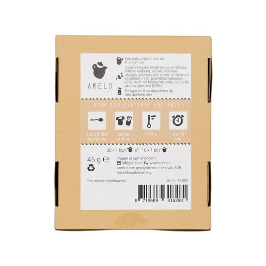 Een verfrissende en fruitige kruidenthee met veel ontgiftende ingrediënten zoals zwarte bes, salie en aloëvera. Start je dag goed en vol energie. Geef jezelf een gezondheid boost met deze heerlijke kruidenmelange.
