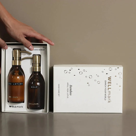 De geur van deze set is een unieke combinatie van bamboe, appel, peer en lotus. De frisse en groene geur van bamboe zorgt voor een levendige, natuurlijke basis, terwijl de fruitige tonen van appel en peer een speelse en verkwikkende geurbeleving bieden. De delicate geur van lotus voegt een ontspannende noot toe. Samen creëren deze geuren een serene atmosfeer, die je doet denken aan een verkwikkende ochtend in de natuur, waar je omringd bent door de frisheid van de buitenlucht.