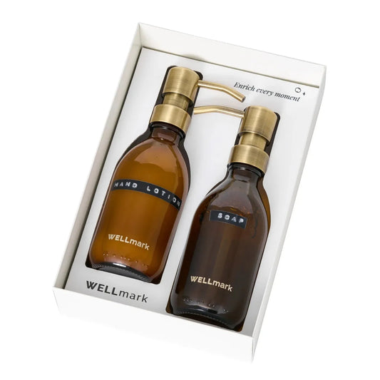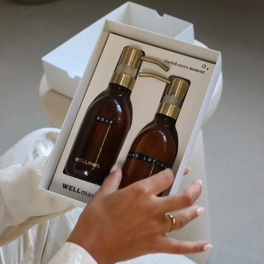 Beide producten zijn gemaakt in sociale werkplaatsen, wat ook nog bijdraagt aan de samenleving. De flessen hebben een inhoud van 250 ml en zijn gemaakt van bruin glas, met een elegante messing pomp die een luxe uitstraling biedt.