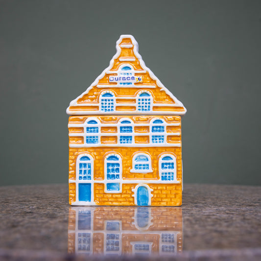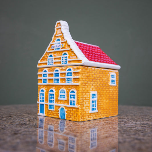 De symbolische panden van handelskade in Willemstad, maar dan voor thuis. Een prachtig keramieken cadeau van een topmerk: Heinen Delfts Blauw. De grotere exemplaren hebben een afneembaar dak en gebruik je voor koekjes, koffiecups of wat je maar wil! Geef ze los of stel een set samen voor iemand die houdt van Curaçao en de kleurrijke handelskade. En wie houdt daar nu niet van?