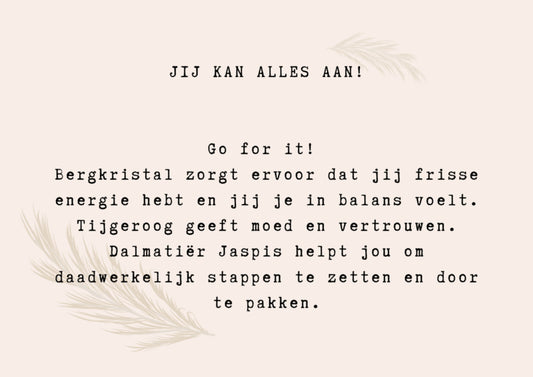 Edelsteen: Tijgeroog, Bergkristal en Dalmatiër Jaspis