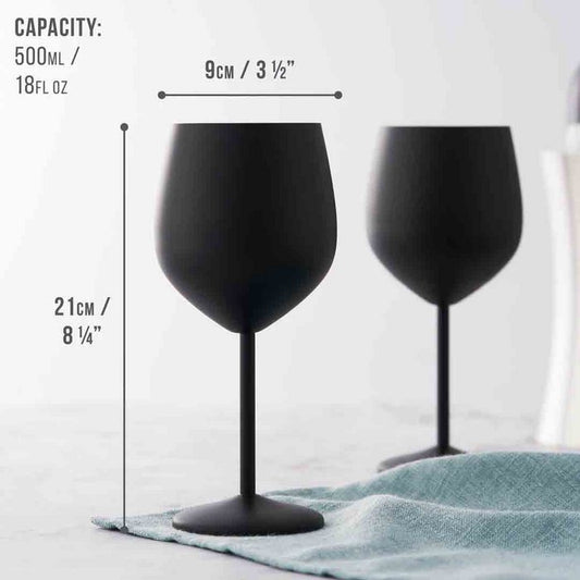 Til elke borrelavond naar een hoger niveau met deze prachtige mat zwarte wijnglazen van Oak & Steel. De stijlvolle, moderne vorm in combinatie met het duurzame roestvrij staal geeft je wijnmoment net dat vleugje luxe dat je thuis verdient — of je nu geniet van een frisse witte wijn of een volle rode.