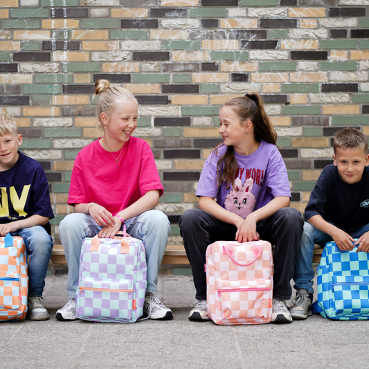 Travel with joy! Met deze rugzak in lila en mintgroene tinten ga je met een glimlach op je gezicht op pad. Een vrolijke combinatie van fijne kleuren.
