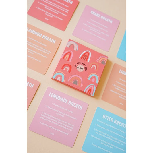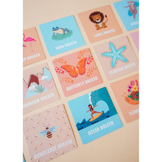 Inclusief 25 ademhalingsoefeningen voor kinderen. De kaarten hebben een afbeelding op de voorkant en de instructies voor de ademhalingsoefening op de achterkant.