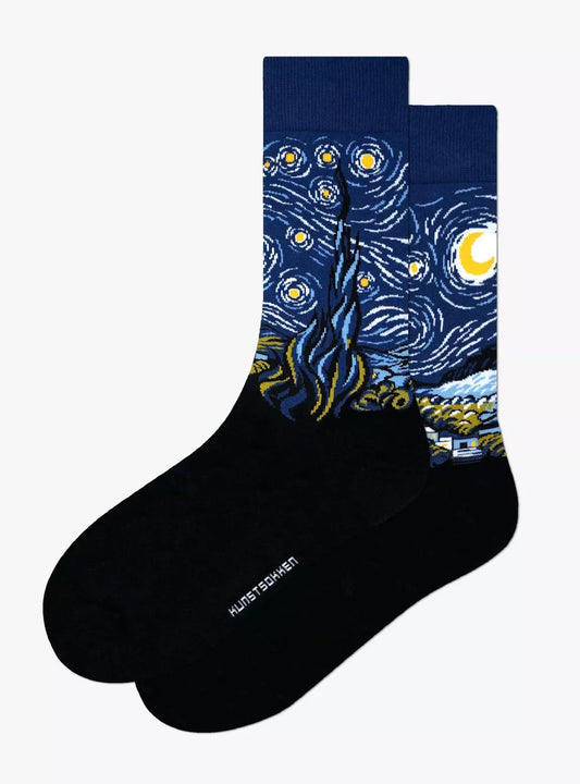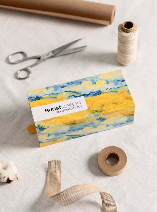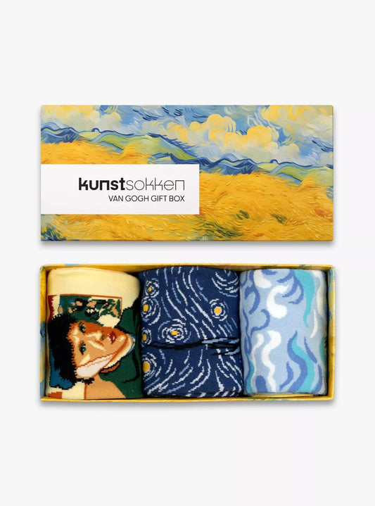 Deze exclusieve geschenkdoos tweemaal drie van Van Gogh's meest iconische werken – van de dromerige Sterrennacht tot het serene Korenveld met Cipressen, dit is een cadeau om te koesteren. Maat 41-46