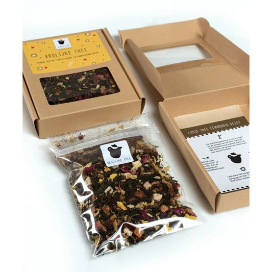 Alleen bij het zien van deze thee word je al vrolijk. Blijheid in een zakje. Begin de dag goed met deze vrolijke thee en je dag kan niet meer stuk. Heerlijke en gezonde ingrediënten zoals rozenbottel, appel, perzik, rozen- en zonnebloemblaadjes maken deze thee een thee waar je gewoon ontzettend blij van wordt.